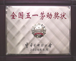 2004年4月29日,江蘇省總工會在南京召開紀(jì)念“五一”國際勞動節(jié)大會,會上,省委領(lǐng)導(dǎo)向王勇董事長頒發(fā)了“全國五一勞動獎狀”獎牌。