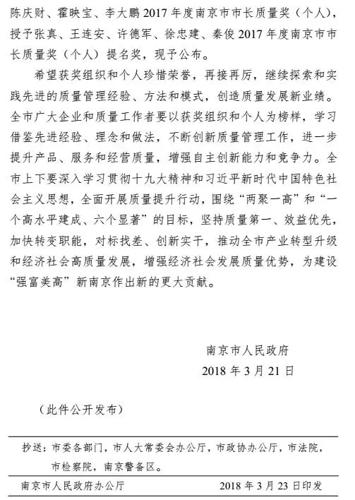 本網(wǎng)訊 日前,南京市人民政府發(fā)文授予中國電子科技集團(tuán)公司第十四研究所等三家單位2017年度南京市市長質(zhì)量獎(組織),授予包括我司在內(nèi)的五家單位南京市市長質(zhì)量獎(組織)提名獎。質(zhì)量獎是企業(yè)運(yùn)營管理領(lǐng)域最具含金量的獎項,我司始終貫徹“質(zhì)量是生命,信譽(yù)是基石,客戶第一,持續(xù)改進(jìn)”的質(zhì)量方針,首次申報就從眾多候選者中脫穎而出,榮獲提名獎,這是社會大眾和政府、專家們對我司質(zhì)量工作的認(rèn)可!更重要的是通過報獎過程,請專家們一起來檢視我們的質(zhì)量管理系統(tǒng),通過申報過程,進(jìn)一步進(jìn)行優(yōu)化完善,然后堅決的執(zhí)行到位,確保企業(yè)高質(zhì)量的運(yùn)營。