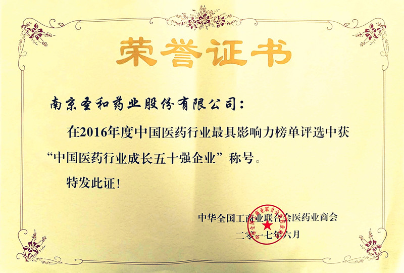 2016年度中國(guó)醫(yī)藥行業(yè)成長(zhǎng)五十強(qiáng)企業(yè)