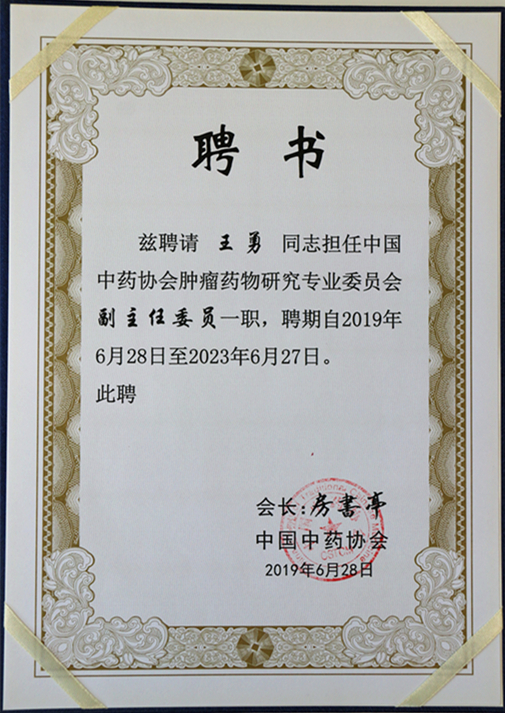 中國(guó)中藥協(xié)會(huì)腫瘤藥物研究專業(yè)委員會(huì)副主任委員