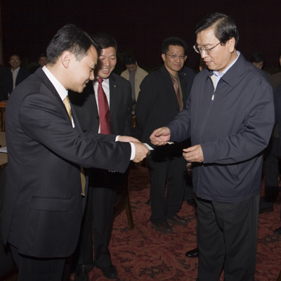 2008年11月1日下午,中共中央政治局委員、國務(wù)院副總理張德江在工業(yè)和信息化部部長李毅中、江蘇省委書記梁保華、省長羅志軍等陪同下,在南京東郊國賓館召開了中小企業(yè)座談會。