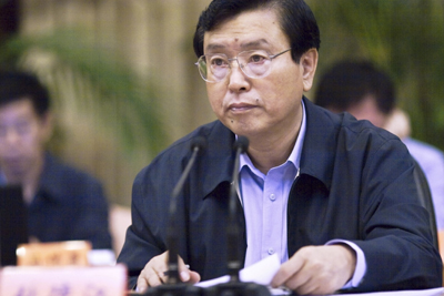 (圖為:國務(wù)院副總理張德江聽取董事長王勇先生的匯報(bào))