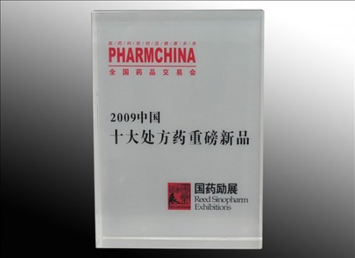 2009年11月25日,在成都世紀(jì)城嬌子國際會議中心舉辦的2009中國醫(yī)藥營銷新銳論壇暨2009十大重磅新品評選發(fā)布會上,由我公司研制的新藥注射用左奧硝唑(優(yōu)諾安)榮獲2009年中國十大處方藥重磅新品稱號。