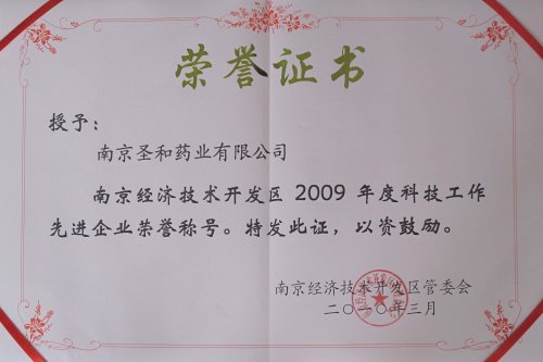 日前,南京經(jīng)濟技術(shù)開發(fā)區(qū)管委會授予我公司“南京經(jīng)濟技術(shù)開發(fā)區(qū)2009年度科技工作先進企業(yè)”稱號。