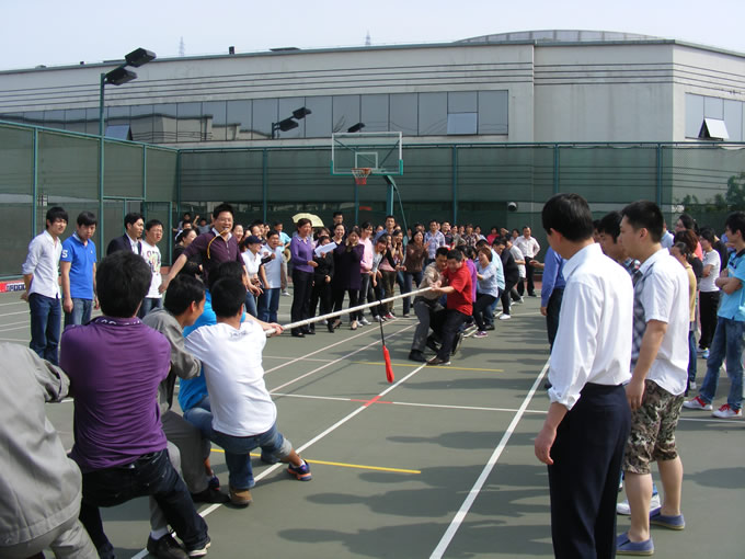 4月28日下午,位于制藥廠內(nèi)的籃球場(chǎng)上人聲鼎沸、熱鬧非凡,參加拔河比賽參賽隊(duì)員、啦啦隊(duì)員及工作人員早早來(lái)到了場(chǎng)地。15點(diǎn)整,隨著裁判的哨聲一響,參賽隊(duì)員都全身心地投入到比賽中去。隊(duì)員們緊緊抓牢手中的繩子,降低重心,齊心協(xié)力,卯足了勁往后拉。每名隊(duì)員都是竭盡全力,摔倒了,再爬起來(lái),手磨破了,咬咬牙繼續(xù)堅(jiān)持著?!凹佑停〖佑?!”場(chǎng)邊拉拉隊(duì)員們的加油聲、歡呼聲響徹整個(gè)籃球場(chǎng)的上空,此起彼伏,現(xiàn)場(chǎng)氣氛十分熱烈。