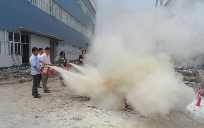 安全員首先對(duì)員工進(jìn)行了消防知識(shí)培訓(xùn),講解了基本的消防常識(shí),包括如何應(yīng)變、自救、消防滅火器的使用等知識(shí),并對(duì)典型的火災(zāi)案例進(jìn)行了剖析,提高了員工的消防安全意識(shí)。演練前,參賽人員被分為幾個(gè)小組,小組成員都有分工,反復(fù)模擬火災(zāi)滅火,最后完成此次消防演練。