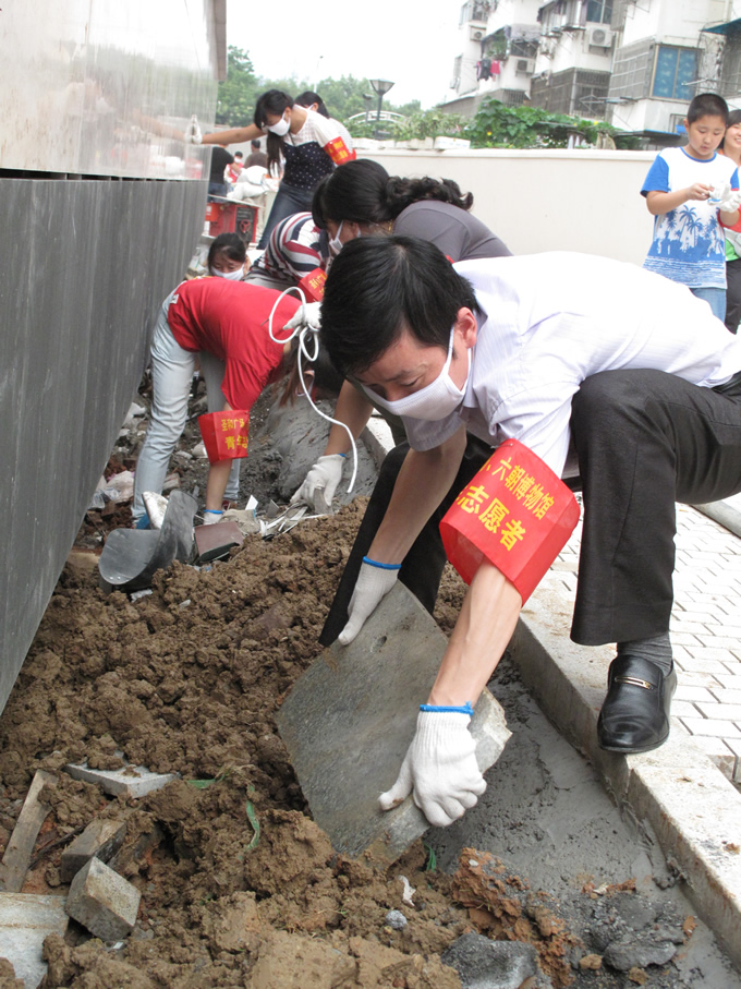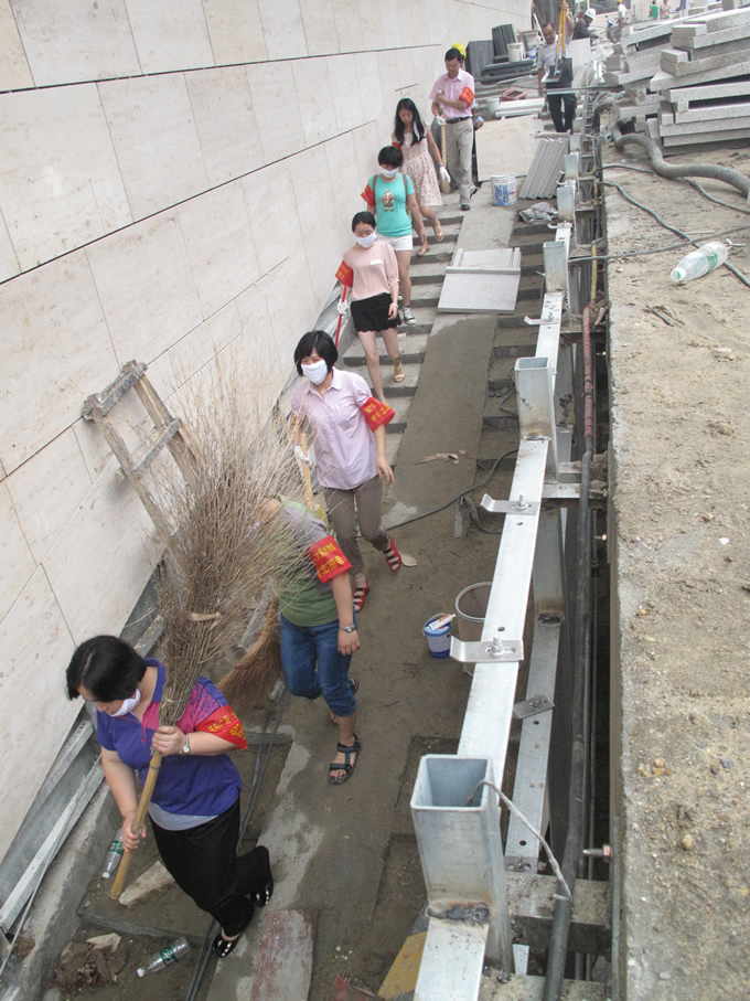 自2011年動工,由我公司代建的南京第一個遺址性博物館--六朝博物館將于8月11日正式開館。開館后該館將成為南京市城市的標志性建筑,也是2014年南京青奧會向國際友人呈現的世界歷史文化名城建設。臨近開館前夕,為保證施工場地形象整潔,圣和藥業(yè)自行組織了這支百名志愿者隊伍,為南京”辦好青奧盛事、創(chuàng)成率先大業(yè)、建設人文綠都“奉獻一份心力。