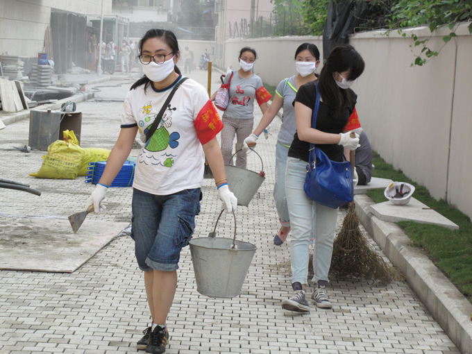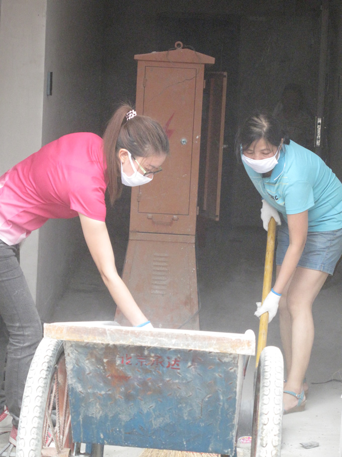 為使志愿工作井然有序、效率提升,組織方圣和置業(yè)公司將志愿者分組編隊,明確了各組的勞動任務,并向每位志愿者提供了袖章、口罩、手套,以及鐵鍬、大小掃帚、小推車等勞動工具。盡管當天烈日當空,現場灰塵飛揚,但志愿者們人人滿懷激情,干勁十足,不怕臟、不怕累,許多人不一會兒就渾身濕透,但這些毫不影響大家的勞動熱情和干勁,因為在身體力行、揮汗如雨的激情里,圣和人體會到了為社會無私奉獻的快樂。為了讓下一代感受這份”愛和奉獻“,感受這份勞動的光榮,更有圣和員工志愿者帶著自己的孩子一起參與這項工作。此情此景不僅感染著所有的志愿者,也不時受到了路人們的稱贊。