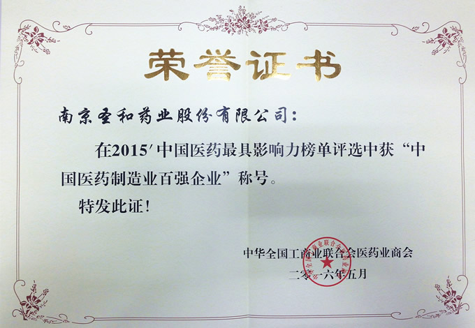 本網訊 2016年5月11-13日,全國工商聯醫(yī)藥業(yè)商會第三次會員(代表)大會暨 2015′中國醫(yī)藥行業(yè)最具影響力榜單發(fā)布會在重慶市麗笙世嘉酒店召開。本次活動由全國工商聯醫(yī)藥商會、中國醫(yī)藥報、中國院長雜志社、重慶市經濟與信息化委員會、重慶市巴南區(qū)人民政府主辦。會上揭曉了2015′中國醫(yī)藥行業(yè)最具影響力榜單,南京圣和藥業(yè)股份有限公司同時榮獲"2015中國醫(yī)藥制造業(yè)百強企業(yè)"和"中國醫(yī)藥制造業(yè)成長五十強企業(yè)"兩項榮譽稱號。這些榮譽再一次折射出圣和藥業(yè)的品牌影響力和行業(yè)地位。