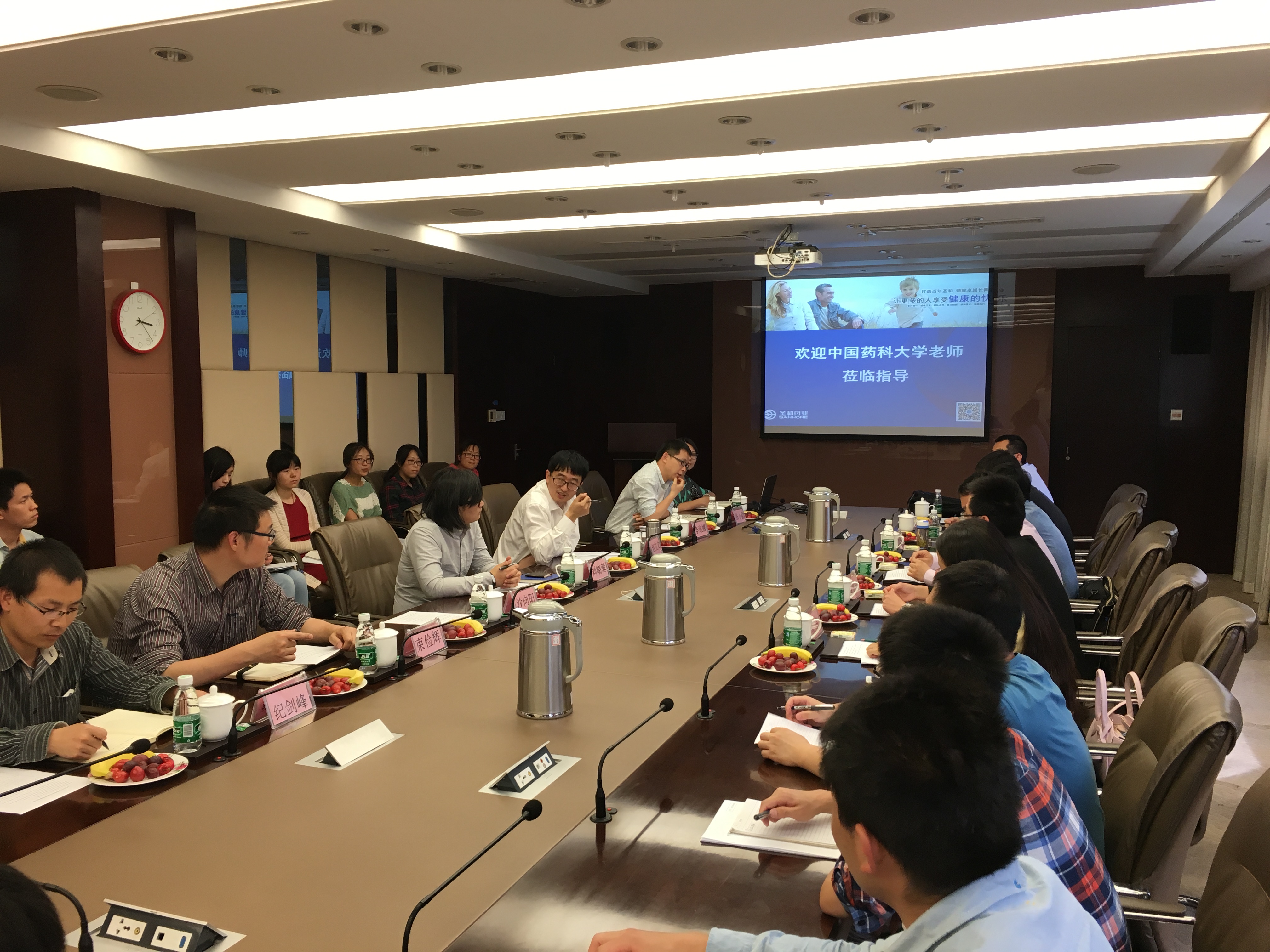 目前,共有23名中國藥科大學(xué)藥學(xué)專業(yè)學(xué)位研究生在圣和藥業(yè)進(jìn)行專業(yè)實(shí)踐和聯(lián)合培養(yǎng)。為了進(jìn)一步提高藥學(xué)專業(yè)學(xué)位研究生教育水平和實(shí)踐基地人才培養(yǎng)質(zhì)量,加強(qiáng)校內(nèi)、校外導(dǎo)師溝通交流,5月18日,圣和藥業(yè)與中國藥科大學(xué)聯(lián)合舉辦藥學(xué)專業(yè)學(xué)位研究生培養(yǎng)座談會(huì)。中國藥科大學(xué)研究生院副院長許風(fēng)國、圣和藥業(yè)研發(fā)中心常務(wù)副主任趙立文、實(shí)踐基地研究生導(dǎo)師及校內(nèi)合作導(dǎo)師、聯(lián)合培養(yǎng)研究生代表參加了會(huì)議。